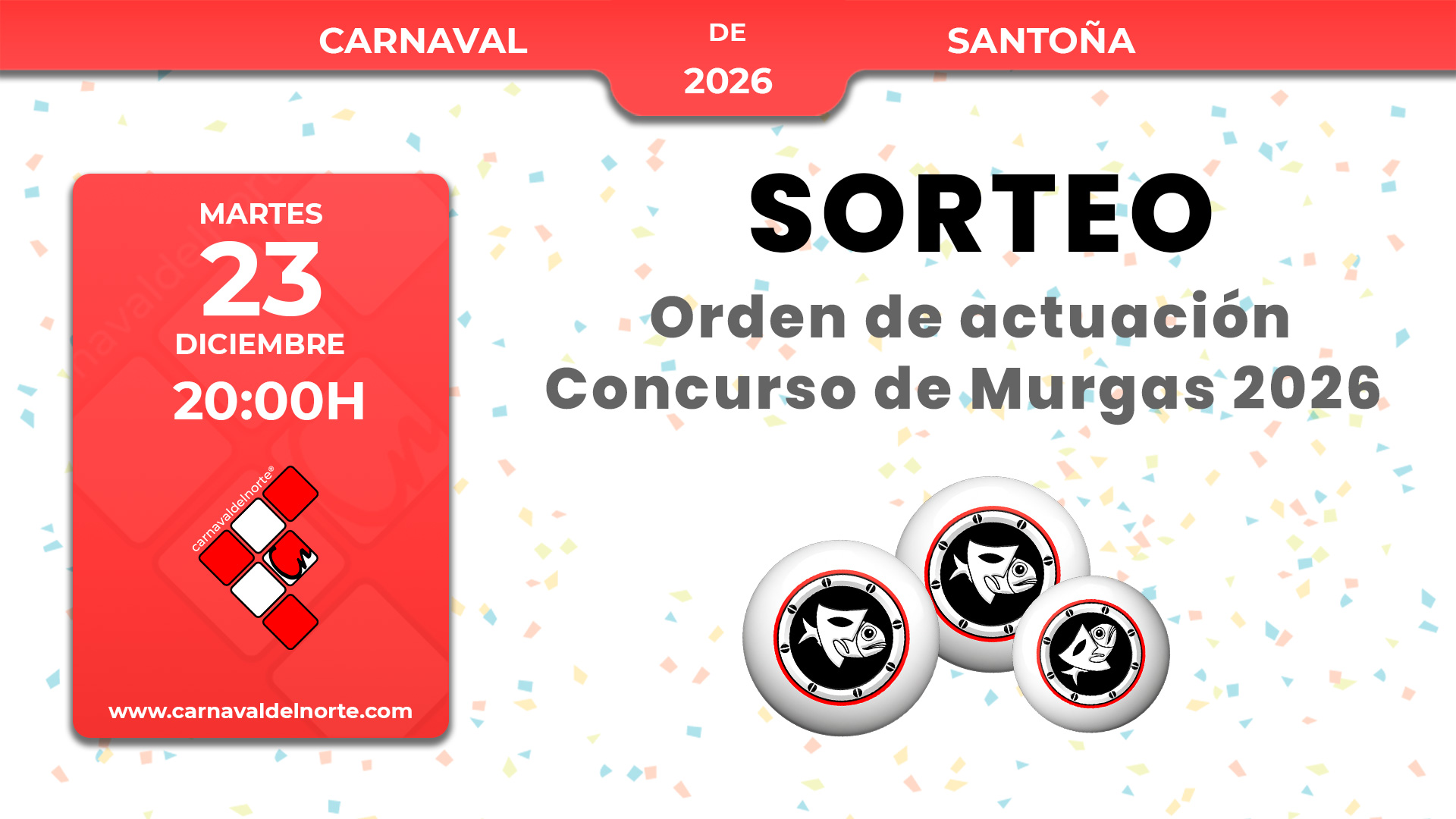 Sigue el sorteo en directo del orden de actuación del concurso de murgas del carnaval de Santoña 2026 desde el salón de Actos del ayuntamiento de Santoña.