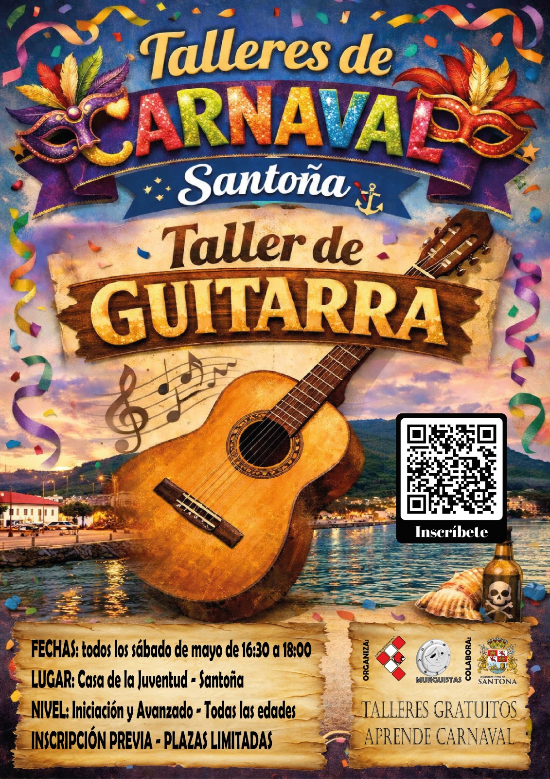 Programado en varias sesiones durante el mes de mayo, este taller combinará teoría básica, aprendizaje de acordes y práctica aplicada a repertorio de murgas. Está pensado tanto para principiantes como para quienes deseen avanzar en su técnica.